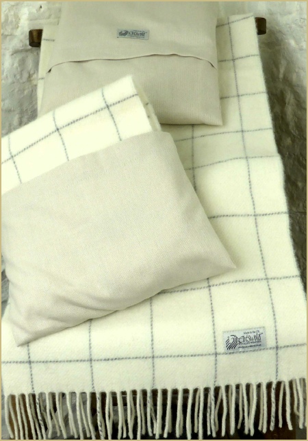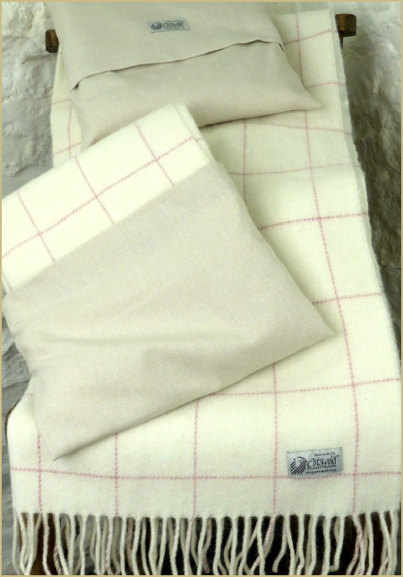 If you love baby, you’ll love our softest Lambswool Baby Blanket in ecru with a pink, blue, or dove grey overcheck.