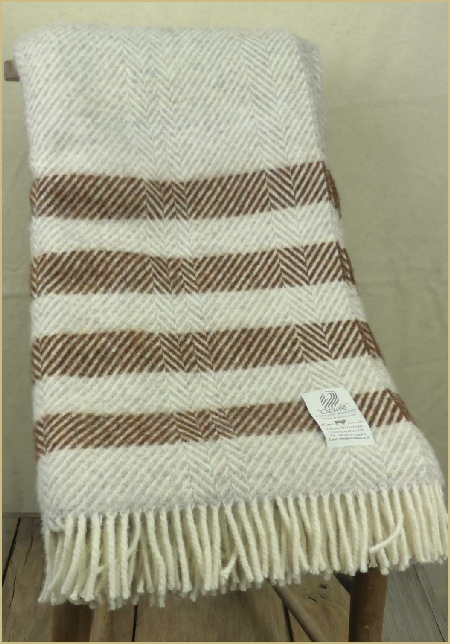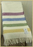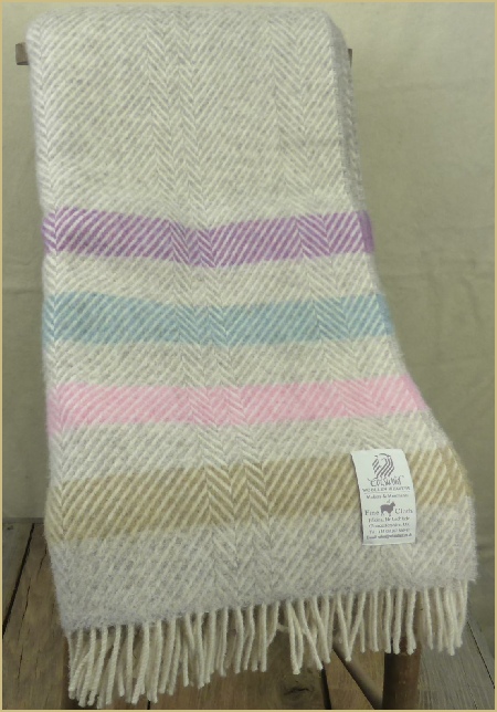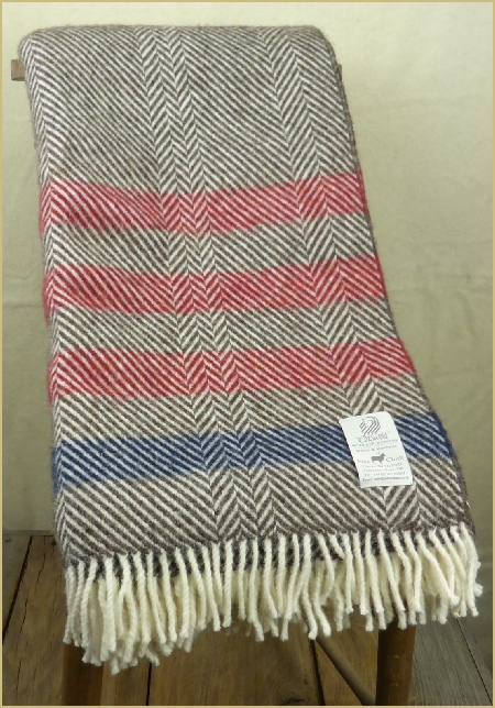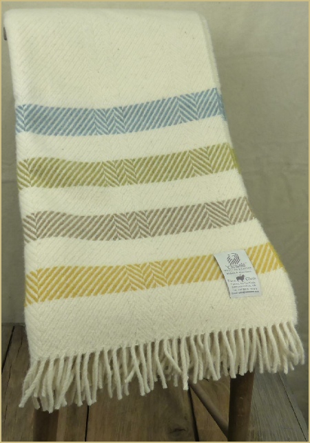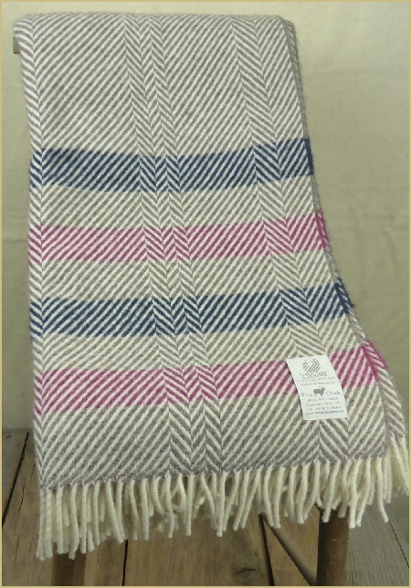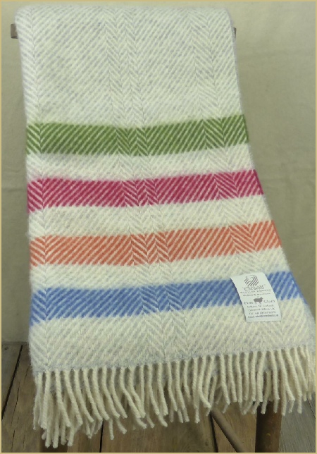 We’ve tweaked the tradition, keeping the light ground and the coloured bars, and adding a fringe to create a range of Cotswold Woollen Weavers’ Contemporary Point Throws.