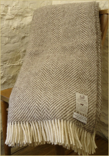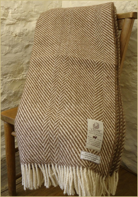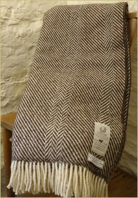 These wonderful throws are woven from from naturally coloured British fleece wool. They therefore contain absolutely no dyestuff, but derive their subtle beauty from the natural colours of the Jacob, Welsh Black and Shetland Moorit sheep from which the wool comes. These throws are finished using natural soap (rather than synthetic detergent.)
