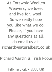 “Some years ago, we visited your lovely shop in Filkins, and I have always wanted to buy another throw. I was delighted to find your website, and delighted with the throw we have bought. We hope to visit Filkins again one day.” From: G.H., Chicago, USA